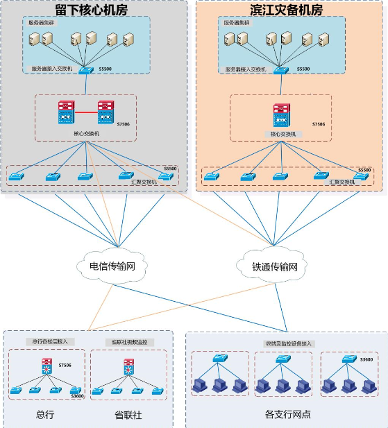 (1) 构建稳定、安全的办公及监控网络,实现核心机房关键设备及链路故障,业务能迅速的切换到灾备机房及备份链路,而不影响业务使用。
